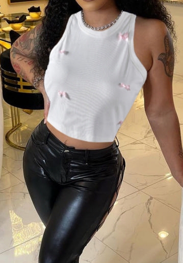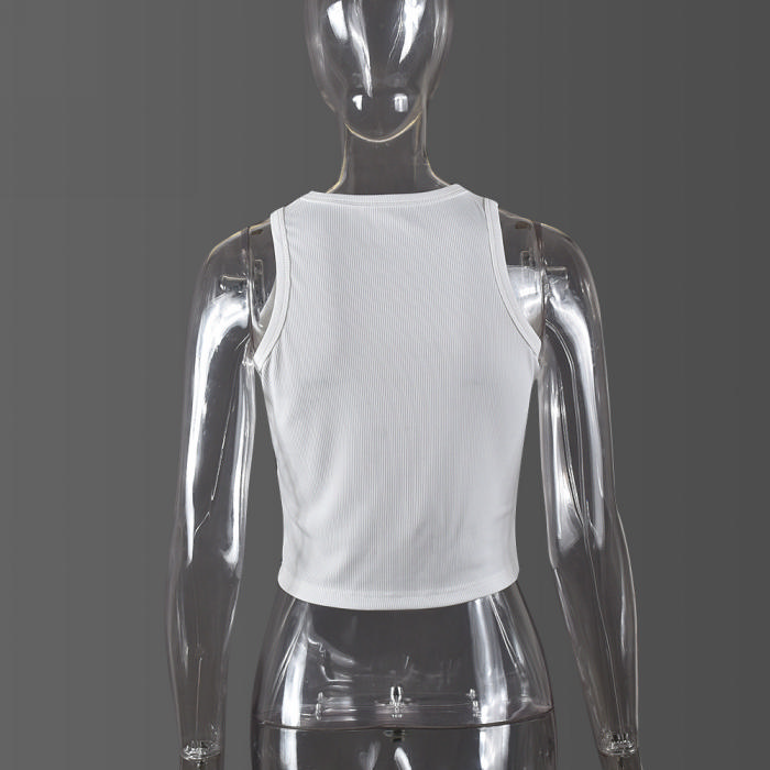(Real Image)2024 Styles Women Summer U-Neck Bejeweled Crop Top Sexy Spicy Tank TopsSKU: #CF59850-1