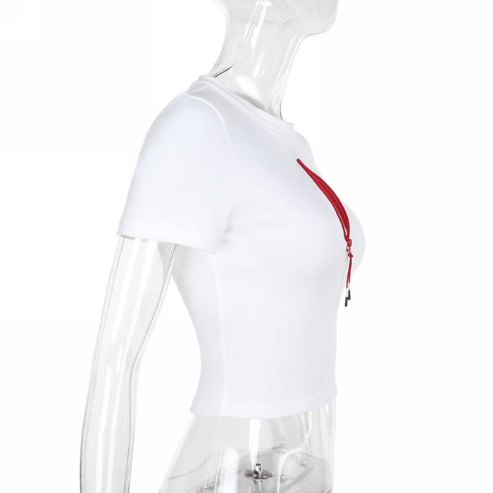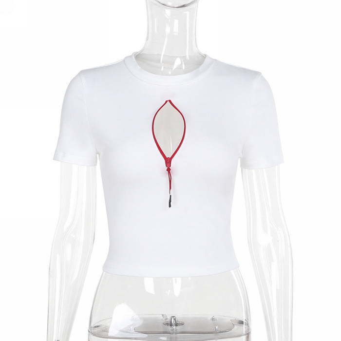 (Real Image)2024 Styles Women Summer Zipper Spicy Open-Work Slim Crop TopSKU: #XF92828-1