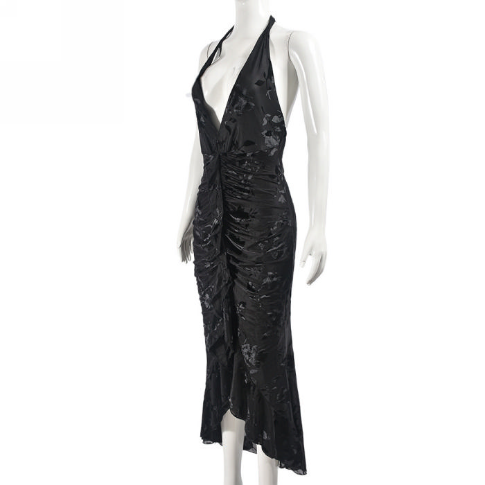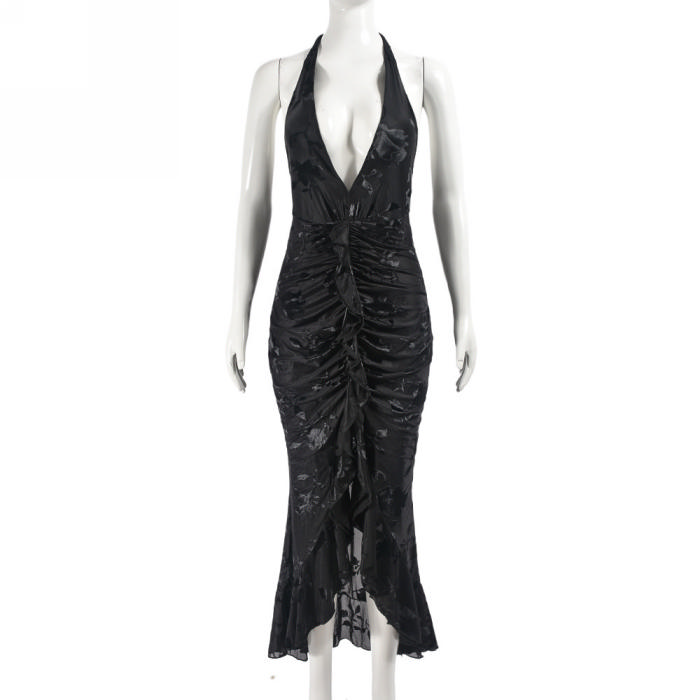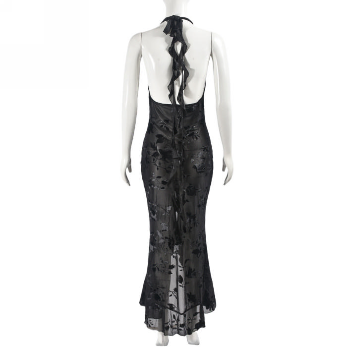 (Real Image)2024 Styles Women Summery Cutout Tie-Neck Velvet Maxi DressSKU: #CF59910-1