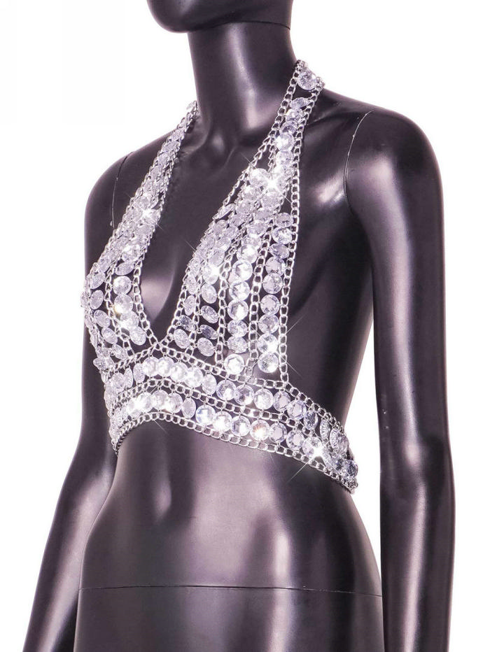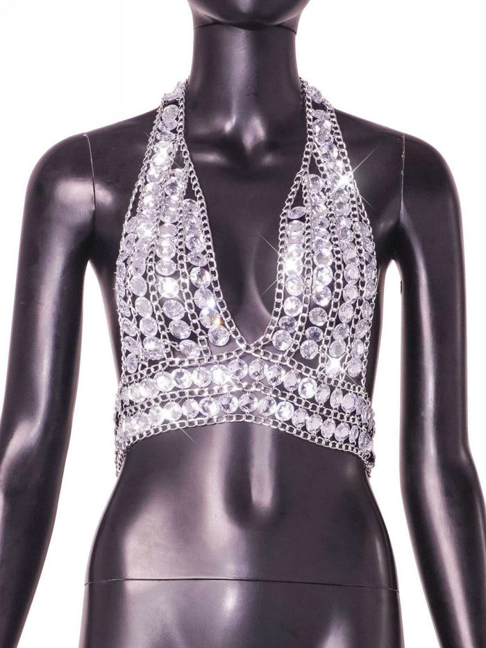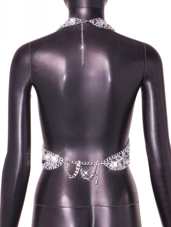 (Real Image)2024 Styles Women Summery and Sexy Acrylic Silver Crystal Chain Body ChainSKU: #CF90176-1