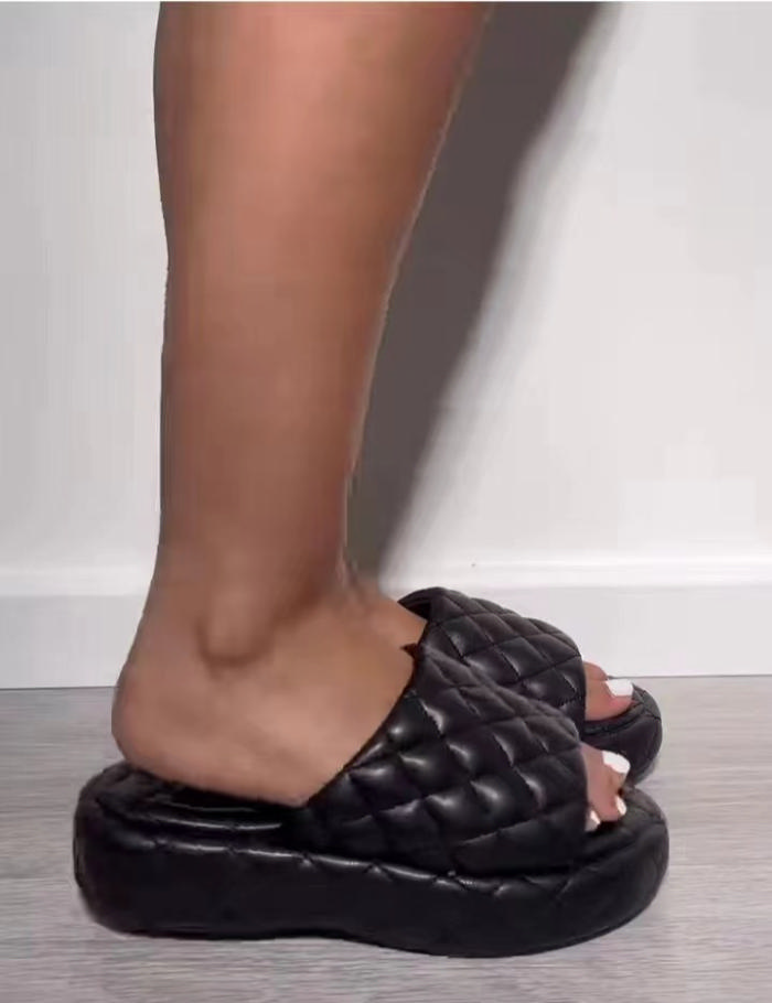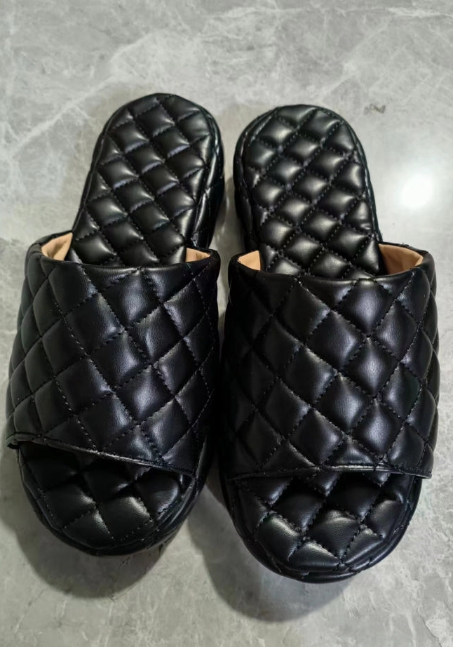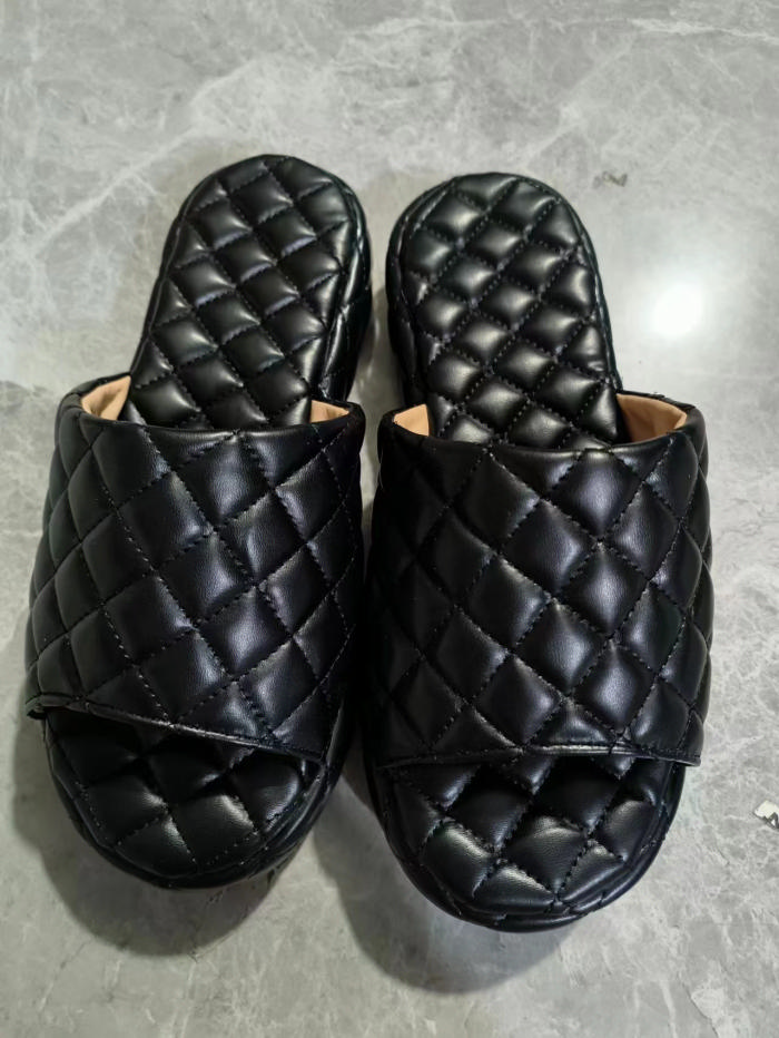 (Real Image)2024 Styles Women Thick-soled Solid Color Chanel-Style Geometric Grid Slip-On SandalsSKU: #OU2945-3
