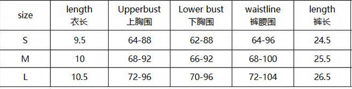 | Size | Bust | Waist | Hips |
