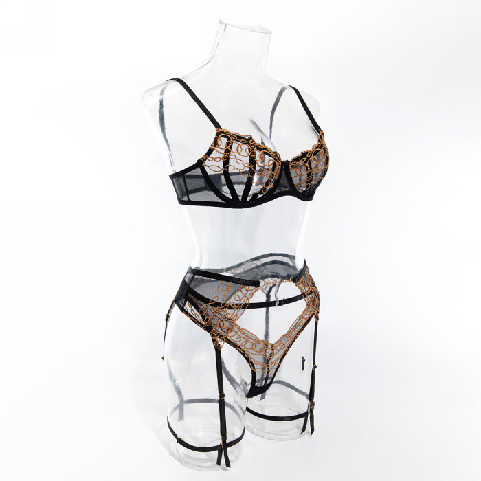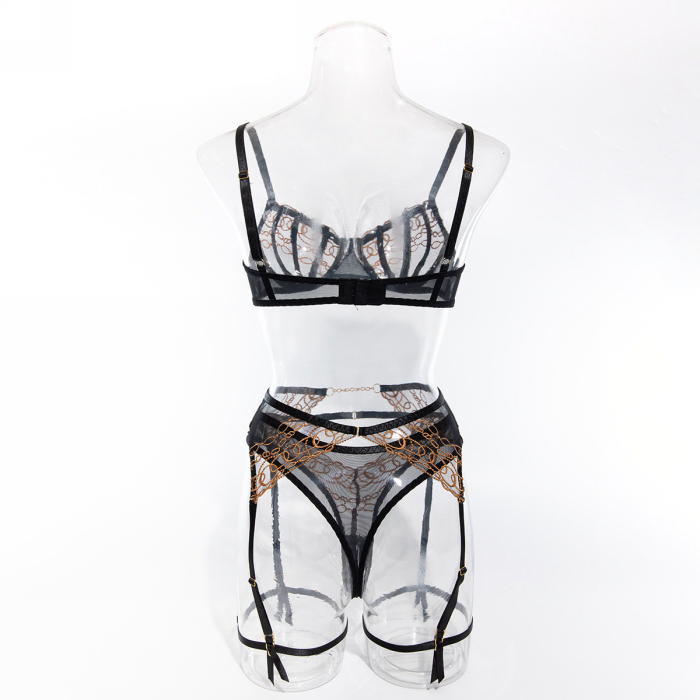 (Real Image)2024 Styles Women Transparent Lace Golden Thread Embroidered Steel-Boned Garter Belt Sexy Lingerie SetSKU: #GF03005-1