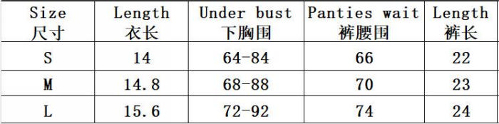 | Size | Bust | Waist | Hips |
