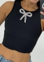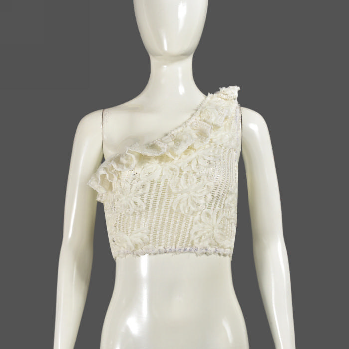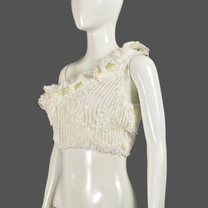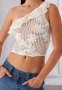 (Real Image)2024 Styles Women Trendsetting Glam: One-Shoulder Crop Top with Ruffle Hem and 3D Floral EmbellishmentsSKU: #CF59944-1