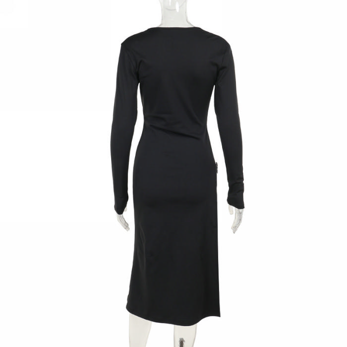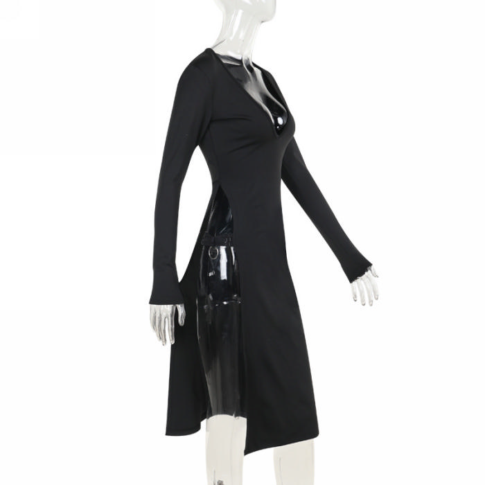 (Real Image)2024 Styles Women V-Neck High-Waist Slit DressSKU: #XF92948-1