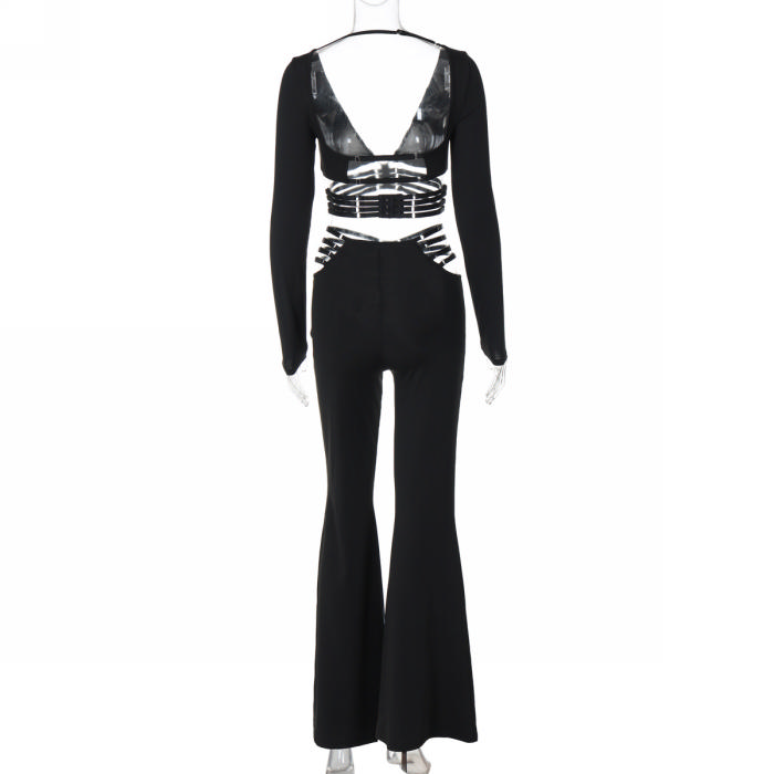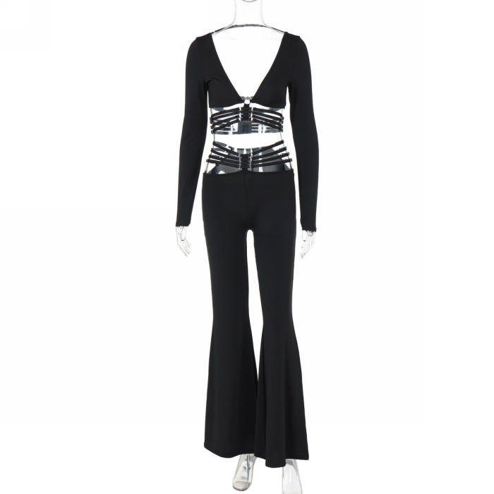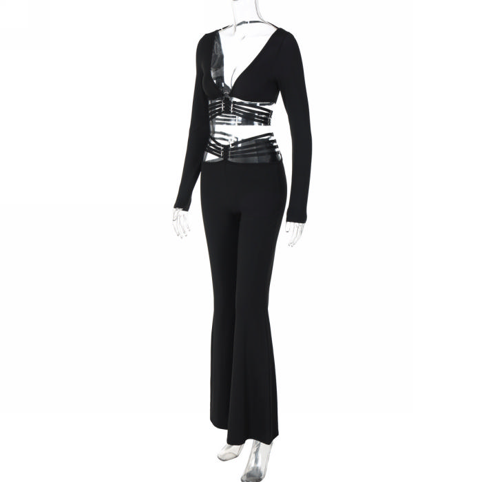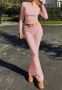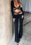 (Real Image)2024 Styles Women V-Neck Long Sleeve Top with Tied Waist Wide-Leg Pants SetSKU: #CF88304-1