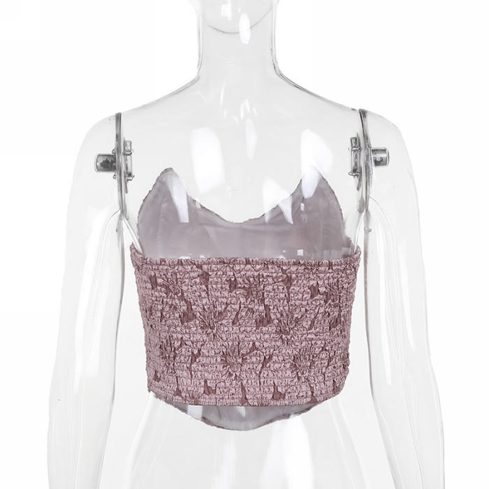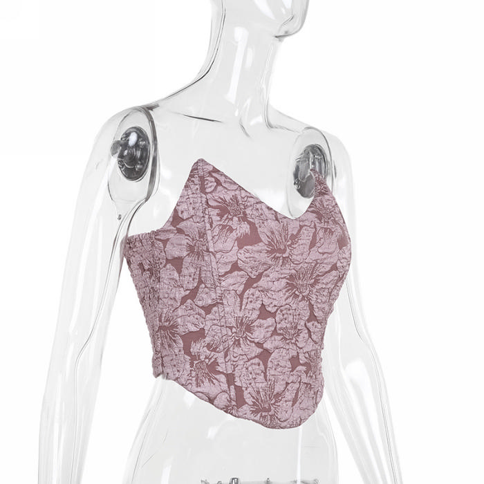 (Real Image)2024 Styles Women Versatile Halter Fashion Elegant Sexy Jacquard Waist-Cinching TopSKU: #XF92831-1
