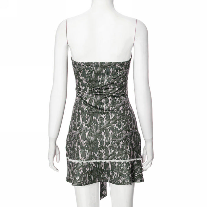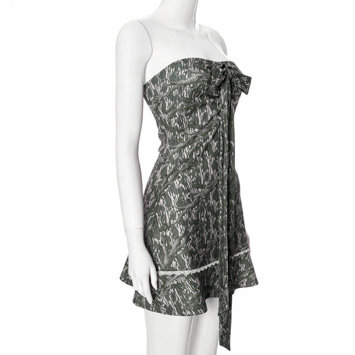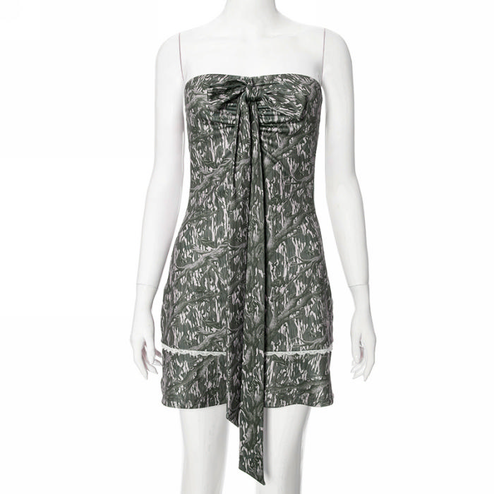 (Real Image)2024 Styles Women Vintage Branch Print Halter Bow Mini DressSKU: #CF76151-1
