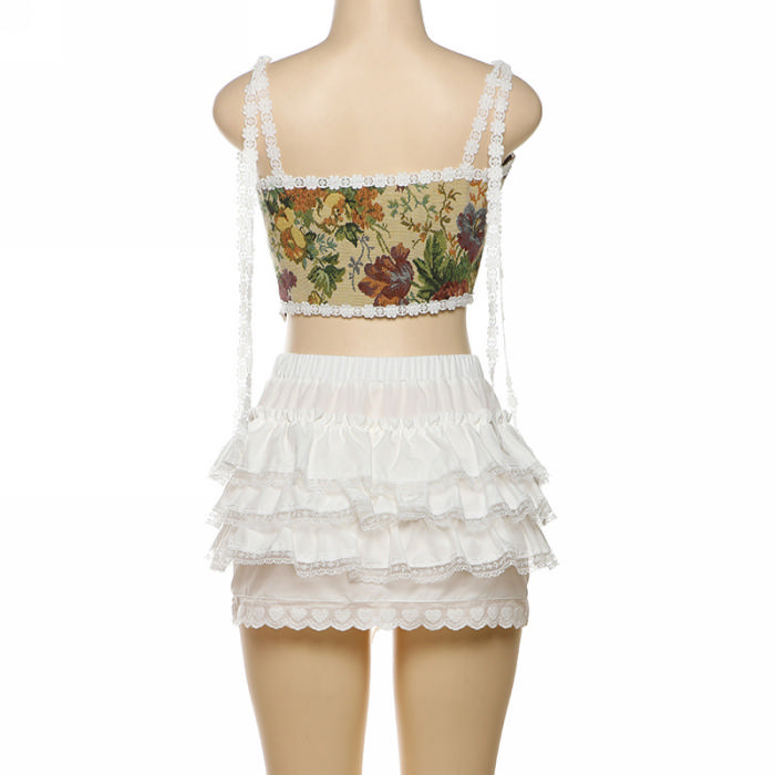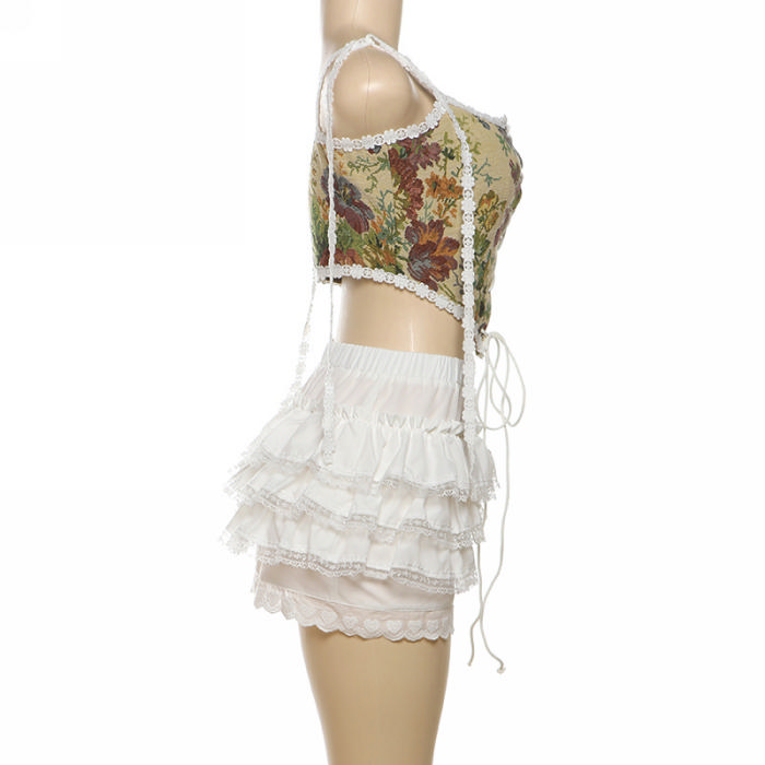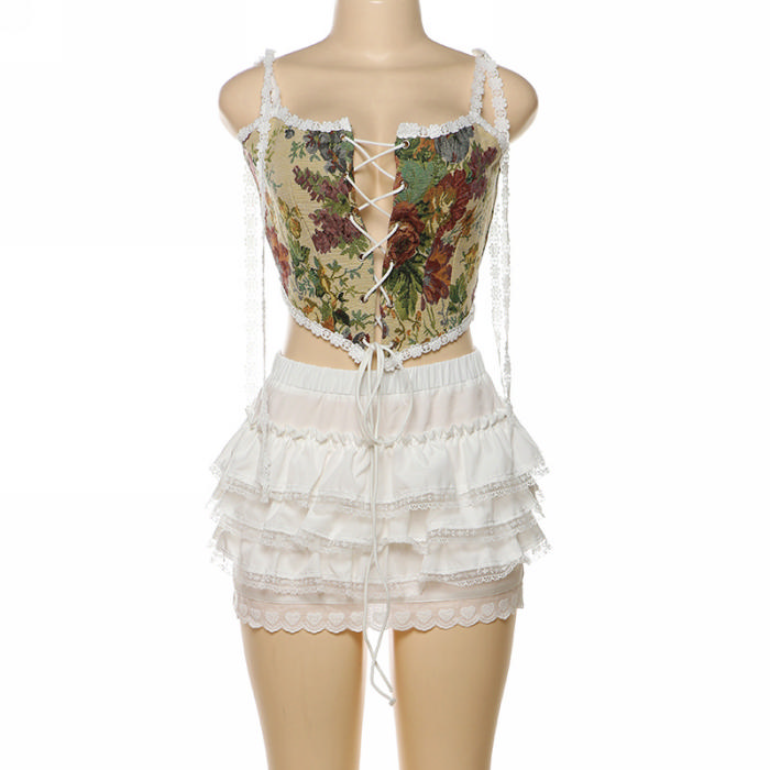 (Real Image)2024 Styles Women Vintage Chic Waist-Cinching Halter Top and Skirt Set with a Corset-Inspired BodiceSKU: #CF83376-1