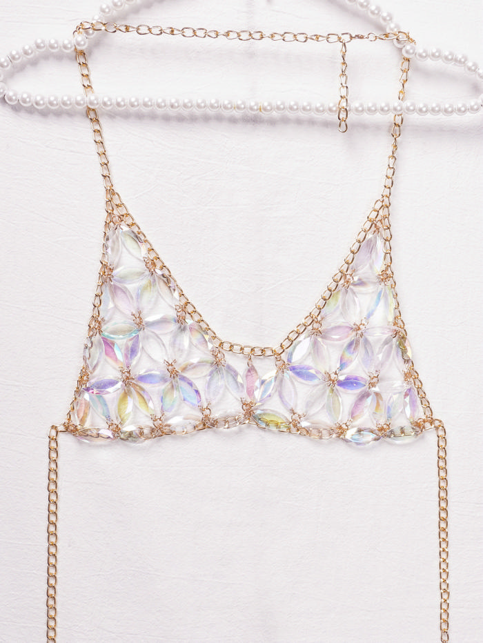(Real Image)2024 Styles Women Vintage Fashion Tassel Acrylic Chest Chain Waist ChainSKU: #CF90143-1