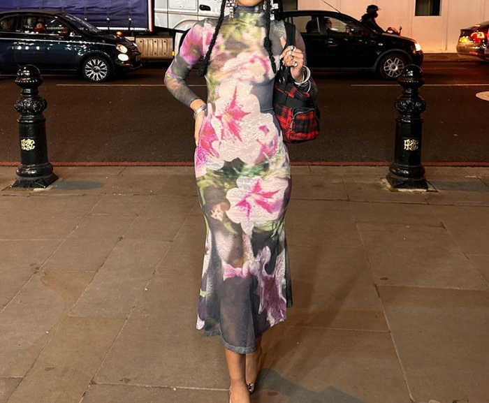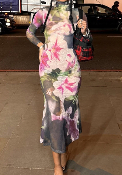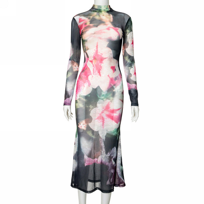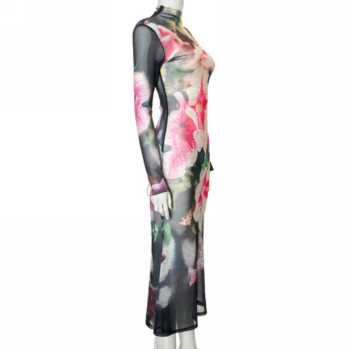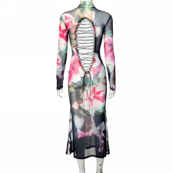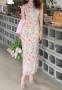 (Real Image)2024 Styles Women Vintage Random Print Reversible Round Neck Long Sleeve Tied Waist Maxi DressSKU: #CF76167-1