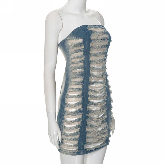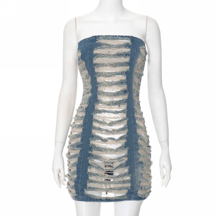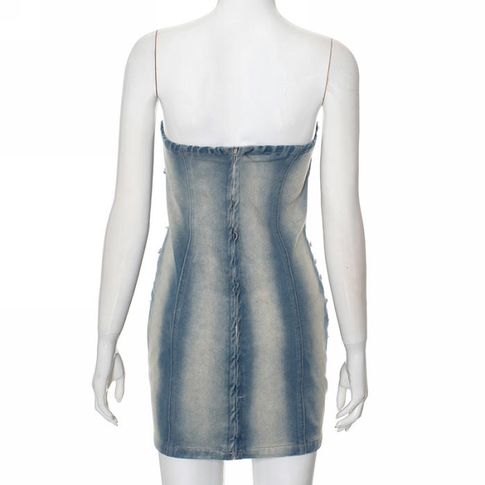(Real Image)2024 Styles Women Washed Hand-Distressed Denim SkirtSKU: #CF42073-1