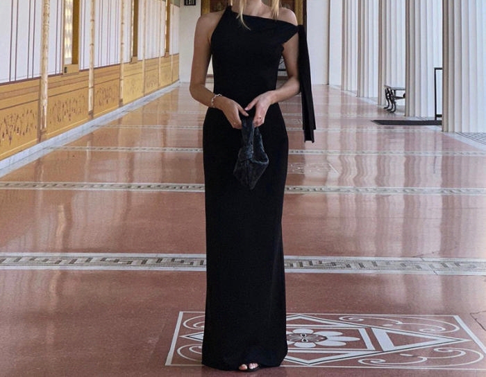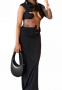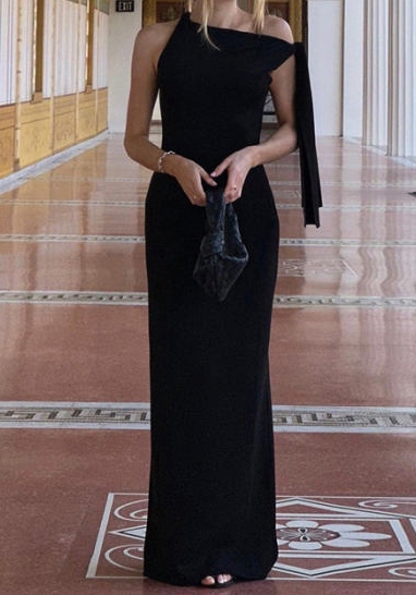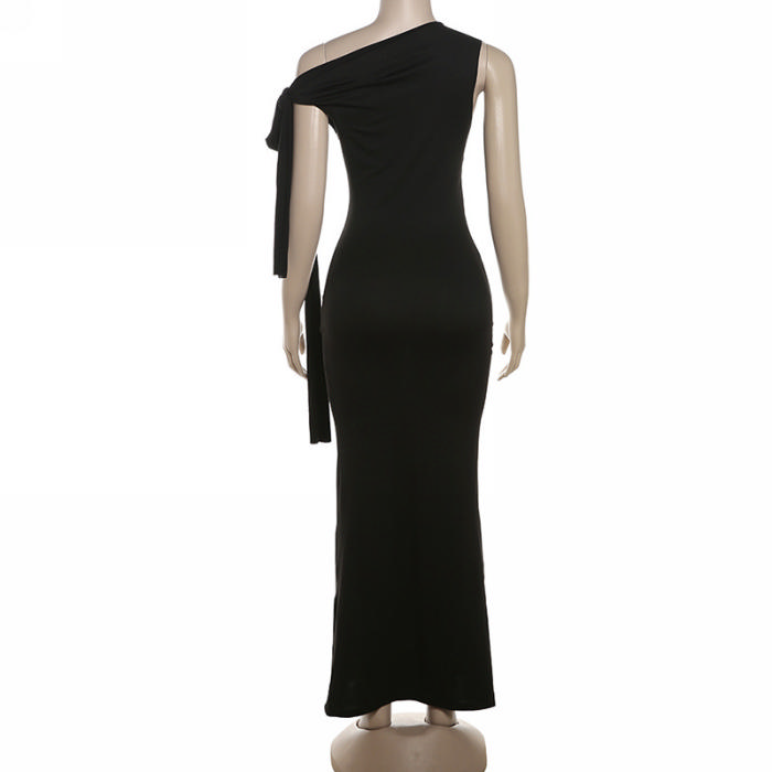 (Real Image)2024 Styles WomenSpring/Summer Solid Color Casual Sexy Asymmetrical Shoulder Slim Fitted Sleeveless Bodycon Maxi DressSKU: #CF83355-1