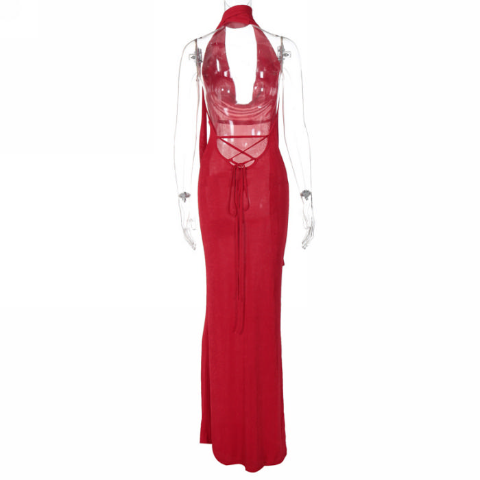(Real Image)2024 Styles WomenSummer Fashion Sexy Backless Lace-Up Bodycon Maxi DressSKU: #CF88201-1
