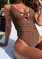 (Real Image)2025 Styles Women Brown Cutout Strap Deep V One-Piece SwimsuitSKU: #CF55307-1