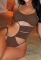 (Real Image)2025 Styles Women Brown Lace-Up One-Piece Swimsuit with CutoutsSKU: #CF55295-1