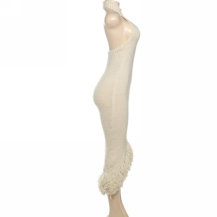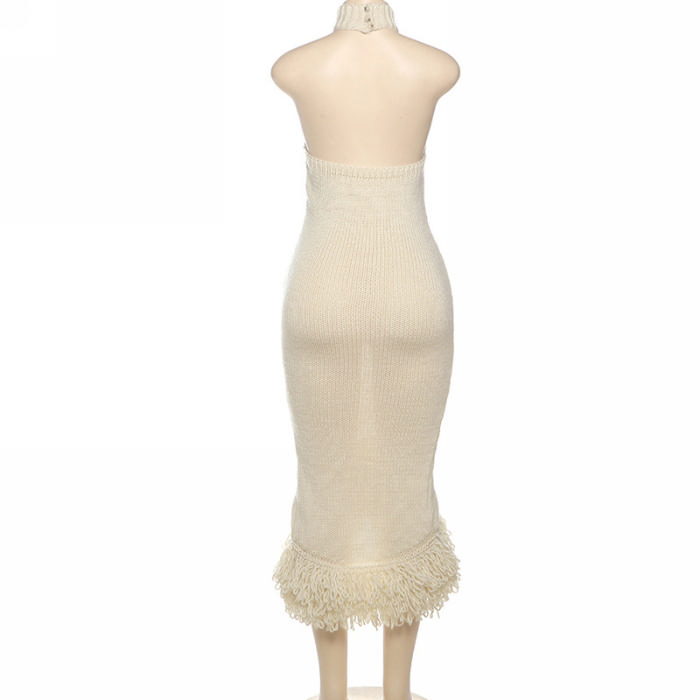(Real Image)2025 Styles Women Off-Shoulder Backless High-Waist Fitted Thong Knitted DressSKU: #CF77882-1