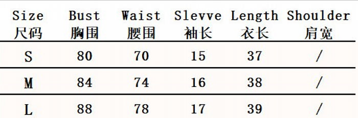 | Size | Bust | Waist | Hips |