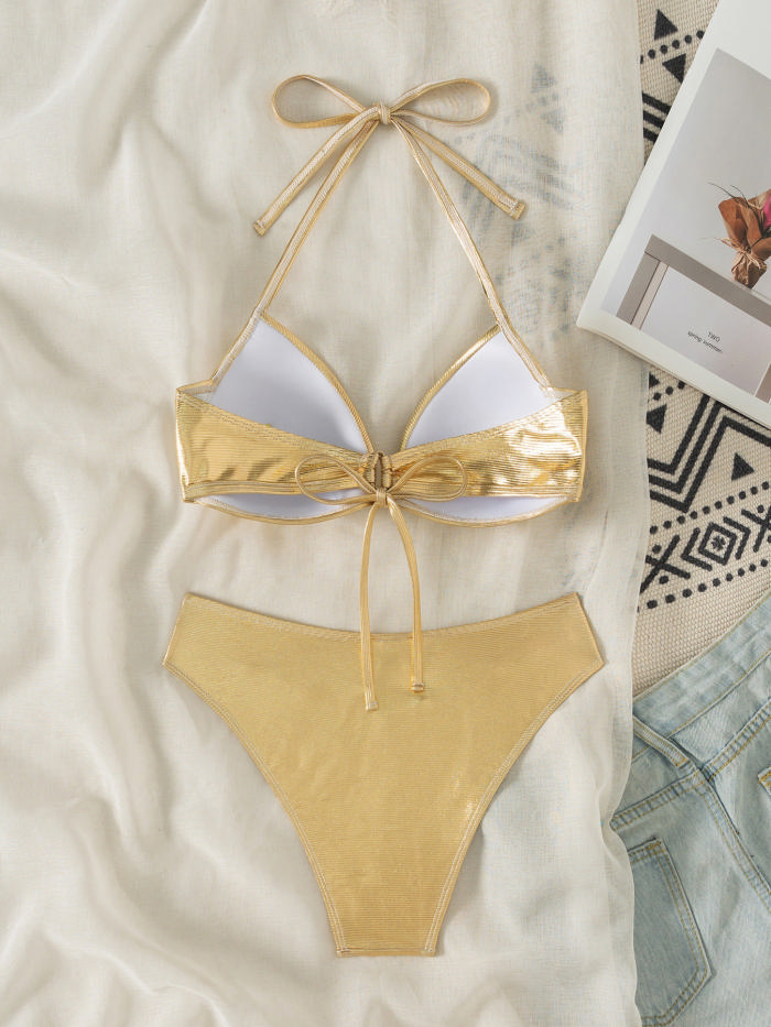 (Real Image)2025 Styles Women Solid Halter Bikini with Rigid CupSKU: #CF57103-1