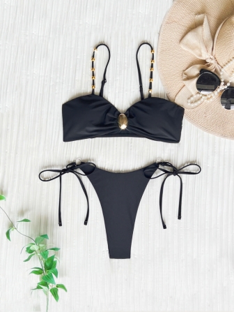 (Real Image)2025 Styles Women Solid High-Waist Backless BikiniSKU: #CF60152-1