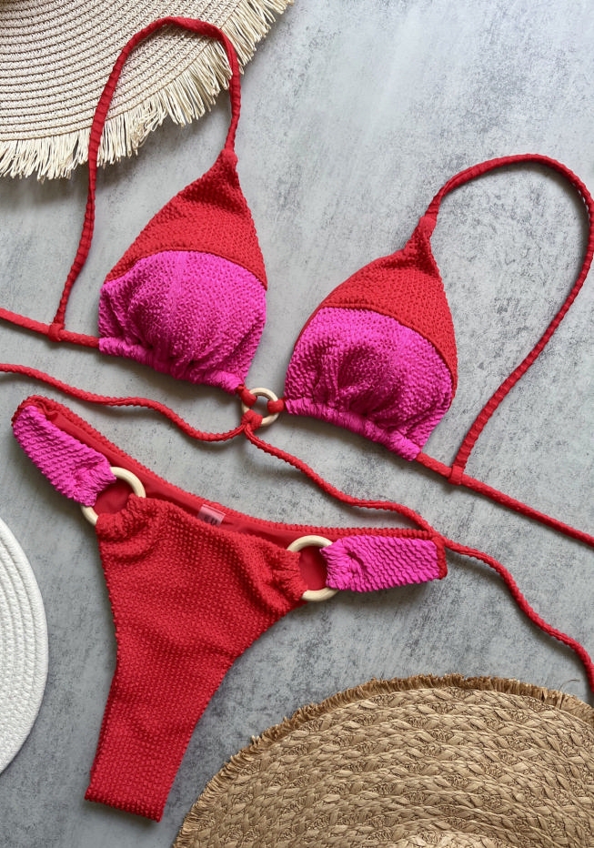 (Real Image)2025 Styles Women Striped Rib Fabric Bikini with Sexy Open BackSKU: #CF95025-2