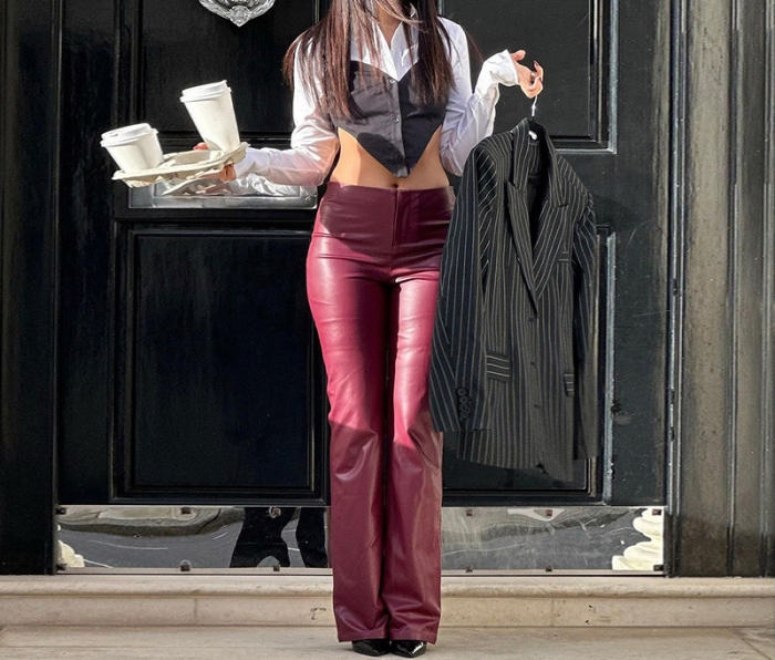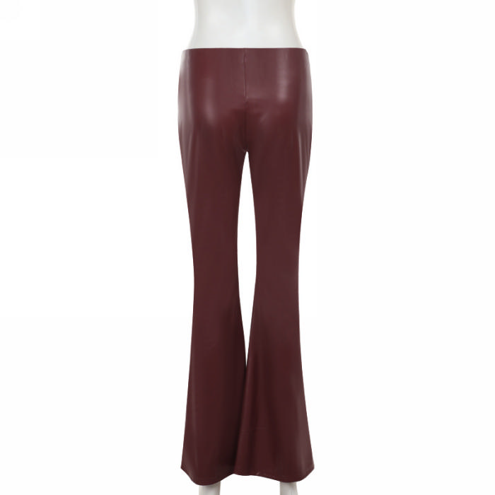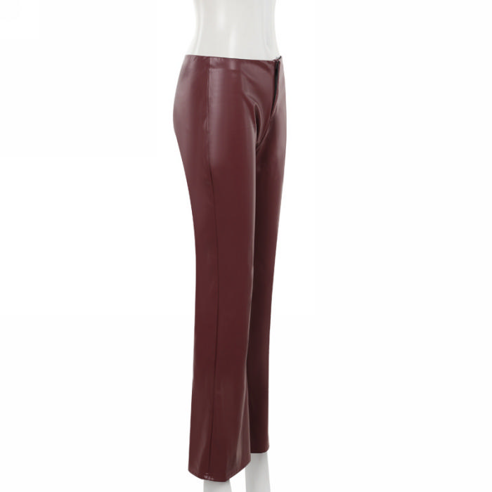 (Real Image,Only Bottom)2024 Styles Women Casual Stretch Leather Low-Rise Slim Straight Leg PantsSKU: #XF92973-1