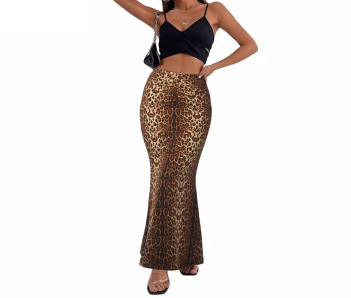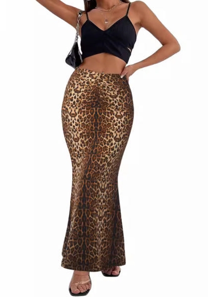 (Real Image,Only Bottom)2024 Styles Women Chic Leopard Print Pencil Fishtail Maxi SkirtSKU: #XF01003-2
