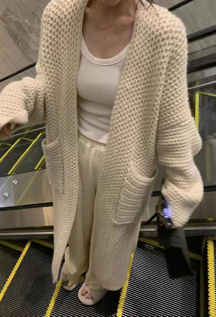 (Real Image,Only Coat)2024 Styles Women Soft and Plush Oversized Pocket Long Sleeve Knit Cardigan CoatSKU: #OU2971-2