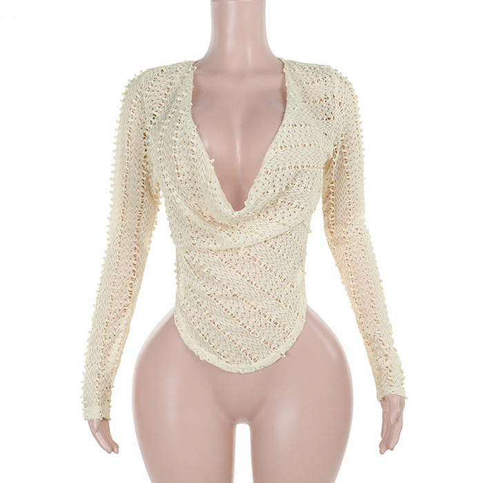 (Real Image,Only Tops)2024 Styles Women Fabric Scoop Neck Long-Sleeve TopSKU: #XF92918-1