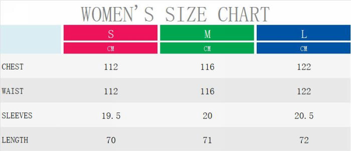 | Size | Bust | Waist | Hips |