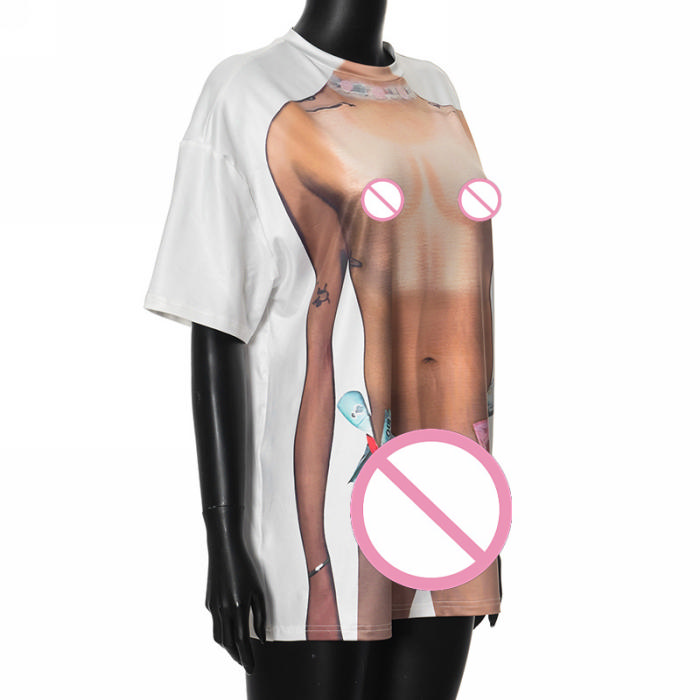 (Real Image,Only Tops)2024 Styles Women Funny and Creative Digital Casual Comfort Short T-ShirtSKU: #CF92129-1