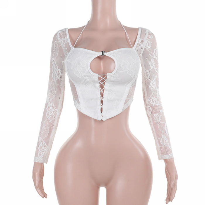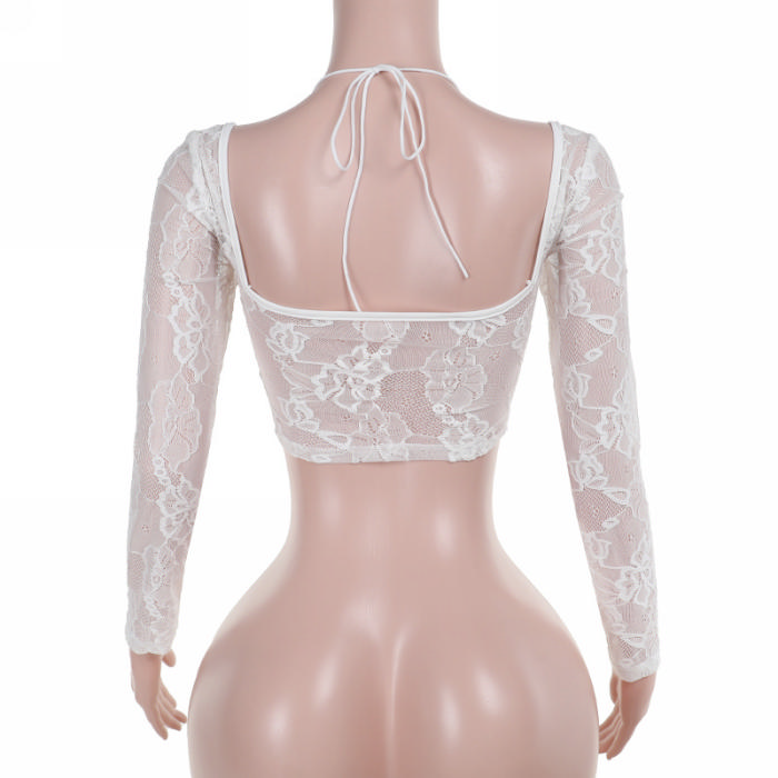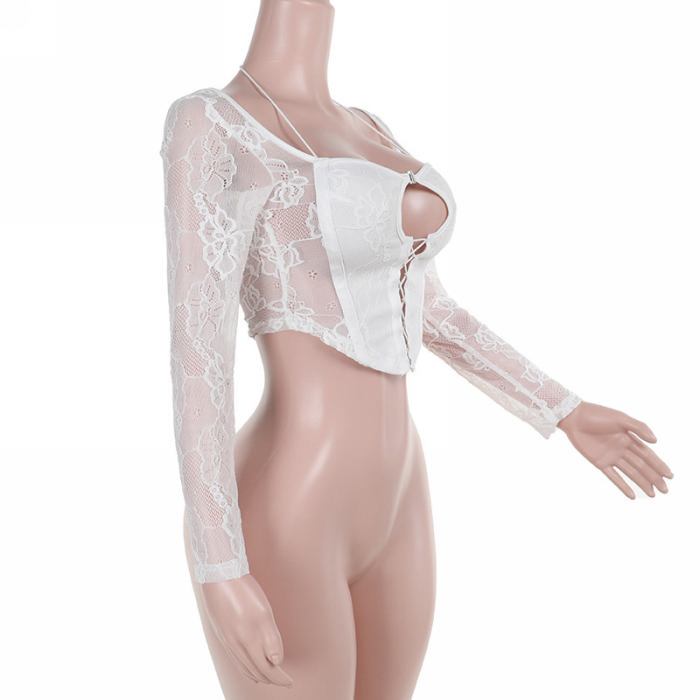 (Real Image,Only Tops)2024 Styles Women Lace-Trimmed Sexy Long-Sleeve TopSKU: #XF92960-1