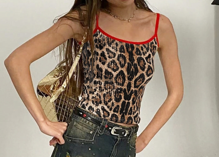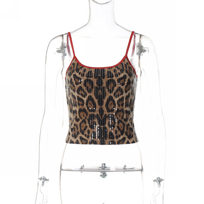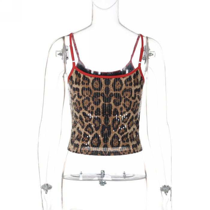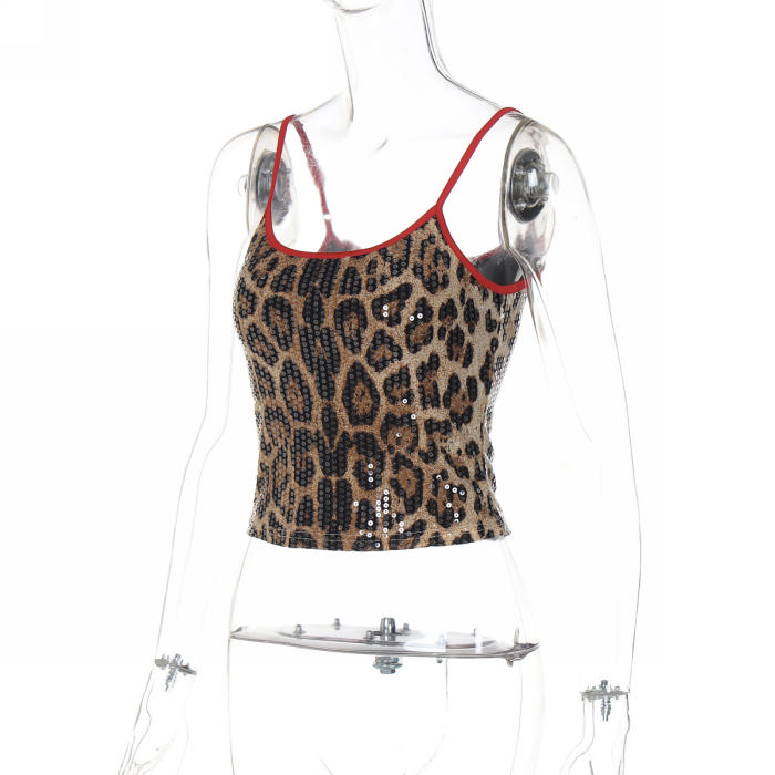 (Real Image,Only Tops)2024 Styles Women Leopard Print Sequined Halter TopSKU: #CF88278-1