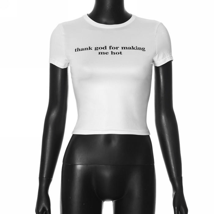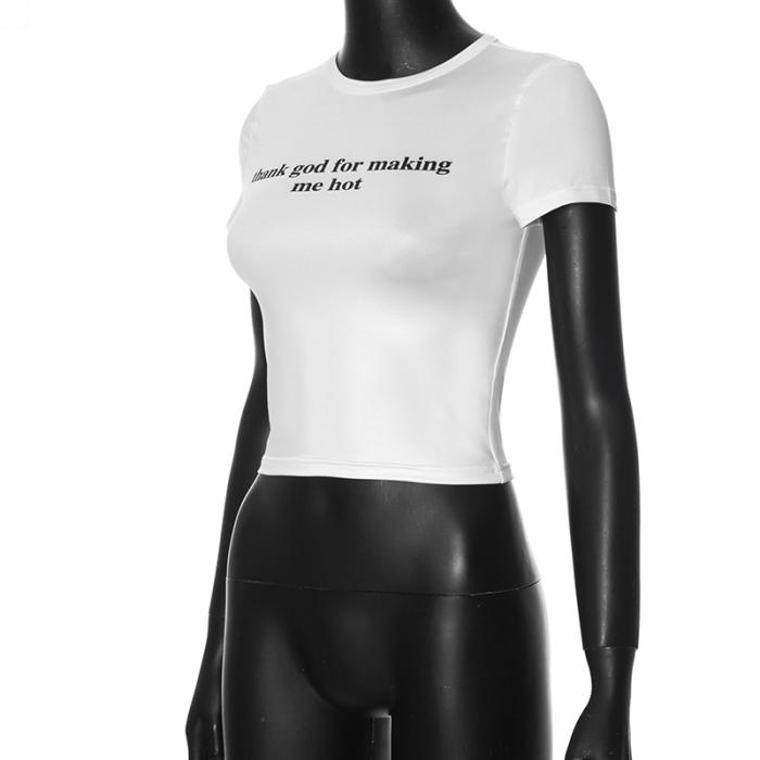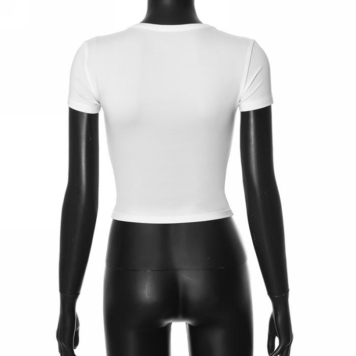 (Real Image,Only Tops)2024 Styles Women Round-Neck Short-Sleeved Bodycon Crop Top Versatile T-ShirtSKU: #CF92119-1