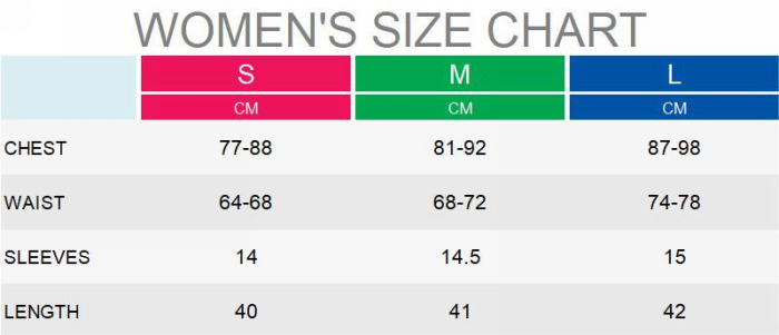 | Size | Bust | Waist | Hips |