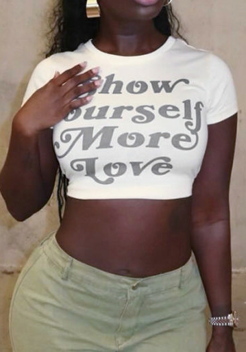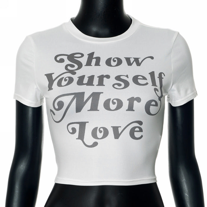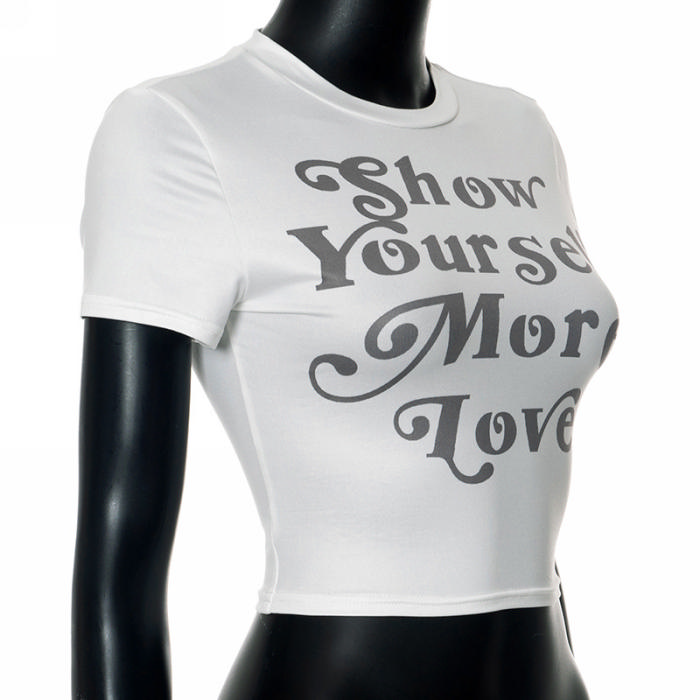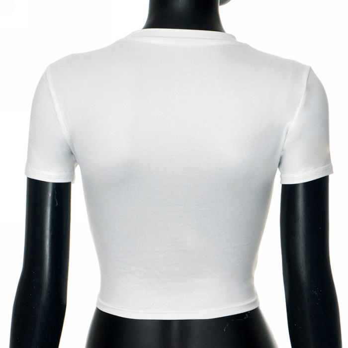 (Real Image,Only Tops)2024 Styles Women Round Neck T-Shirt with Letter Print Cropped Short SleeveSKU: #CF42072-1