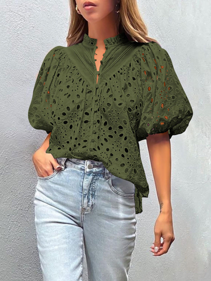 (Real Image,Only Tops)2024 Styles Women Spring/Summer Elegant Puff Sleeve Embroidered BlouseSKU: #XF45076-3