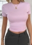 (Real Image,Only Tops)2024 Styles Women Spring/Summer Solid Color Top with Waist-Cinch Crop Fit and Exposed Waist T-ShirtSKU: #XF45079-4
