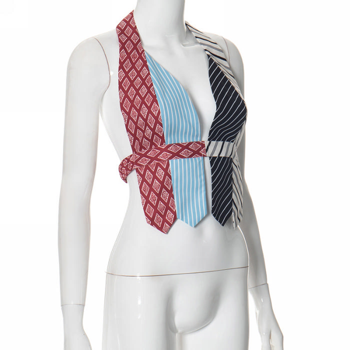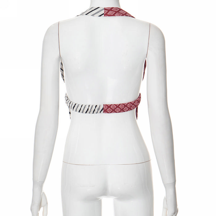 (Real Image,Only Tops)2024 Styles Women V-Neck Patterned Fashion Striped Exposed-Back TopSKU: #CF92124-1