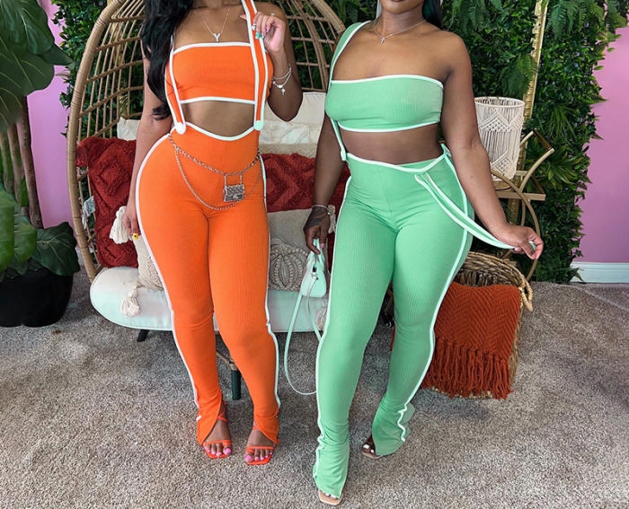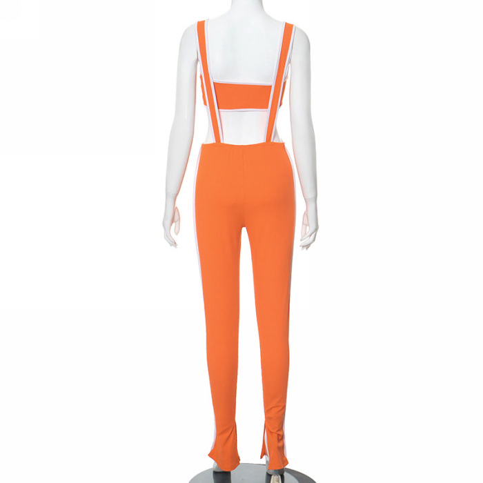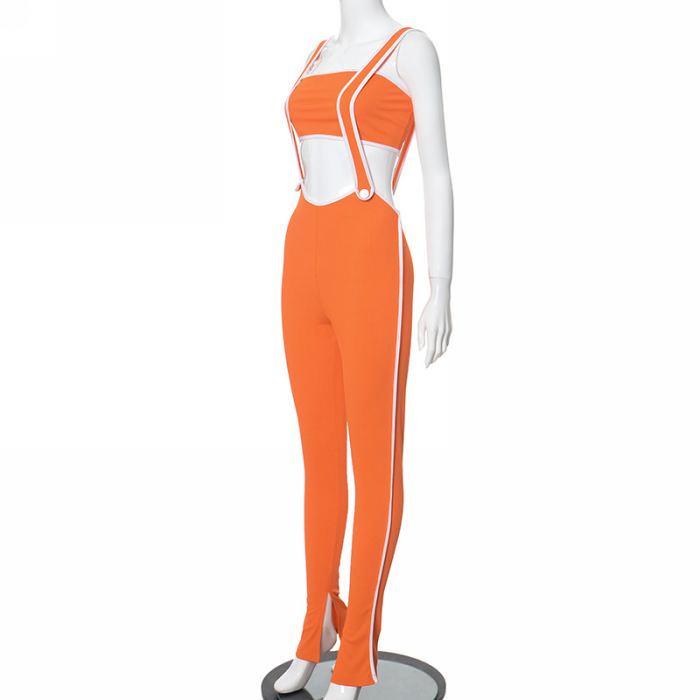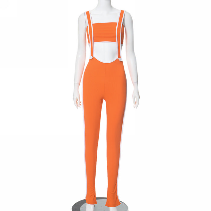 (Real Image,Orange)2024 Styles Women Color-Stretch Ribbed Overalls for Sporty Casual SetsSKU: #CF92048-1