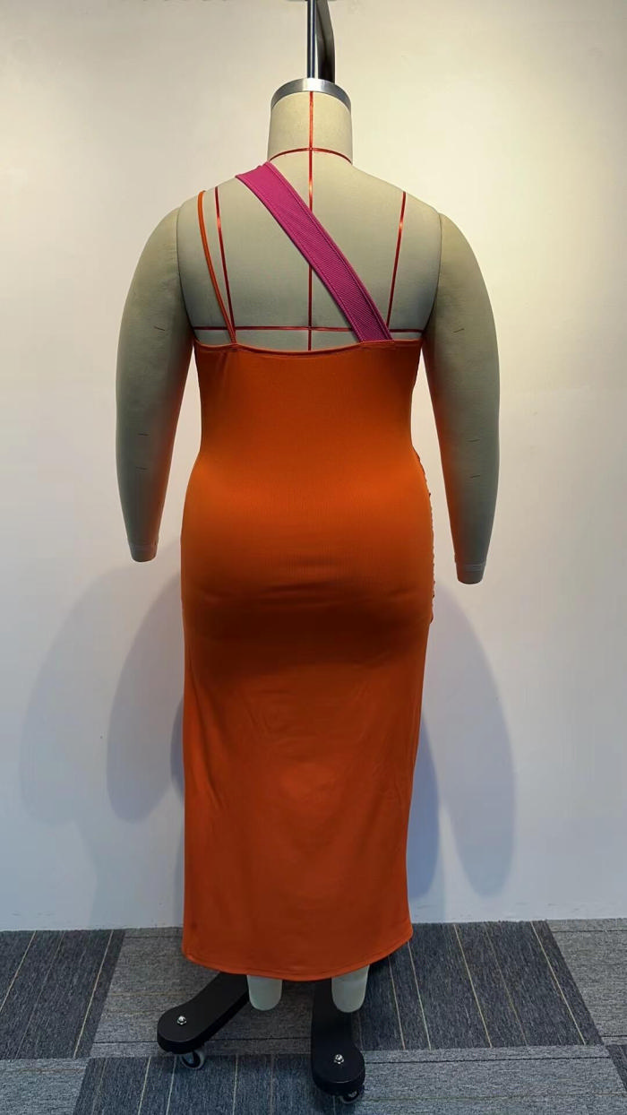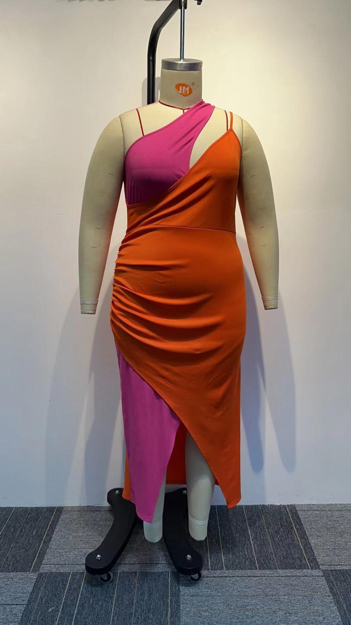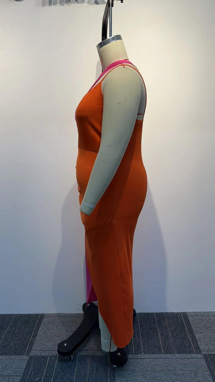 (Real Image)(Plus Size)2023 Styles Women Sexy&Fashion Spring&Summer TikTok&Instagram Styles Contrast Color Maxi DressSKU: #XF27327-1