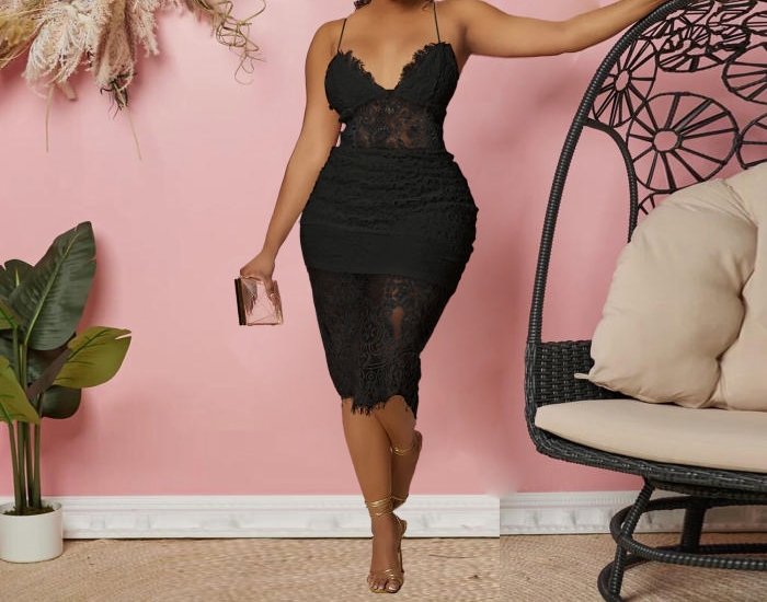 (Real Image)(Plus Size)2023 Styles Women Sexy&Fashion Spring&Summer TikTok&Instagram Styles Lace Club DressSKU: #XF27342-1
