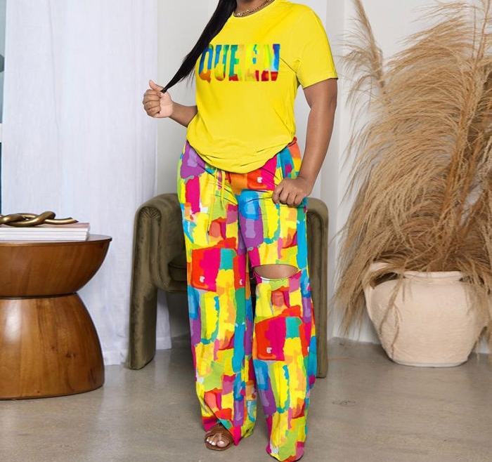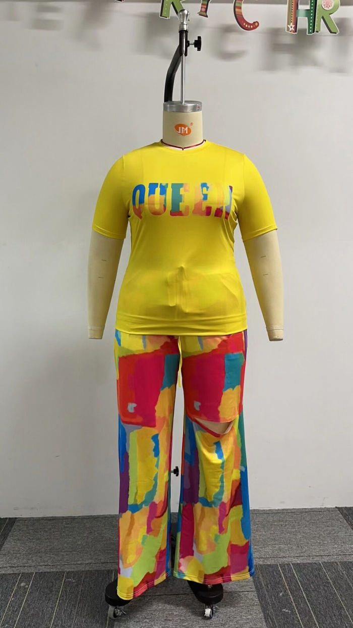 (Real Image)(Plus Size)2023 Styles Women Sexy&Fashion Spring&Summer TikTok&Instagram Styles Loose Two Piece SuitSKU: #XF27345-1