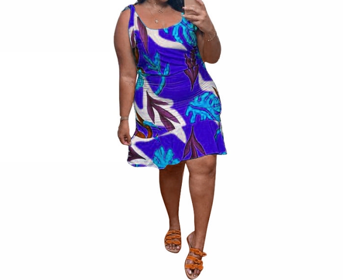 (Real Image)(Plus Size)2023 Styles Women Sexy&Fashion Spring&Summer TikTok&Instagram Styles Print Loose Midi DressSKU: #CF85009-4