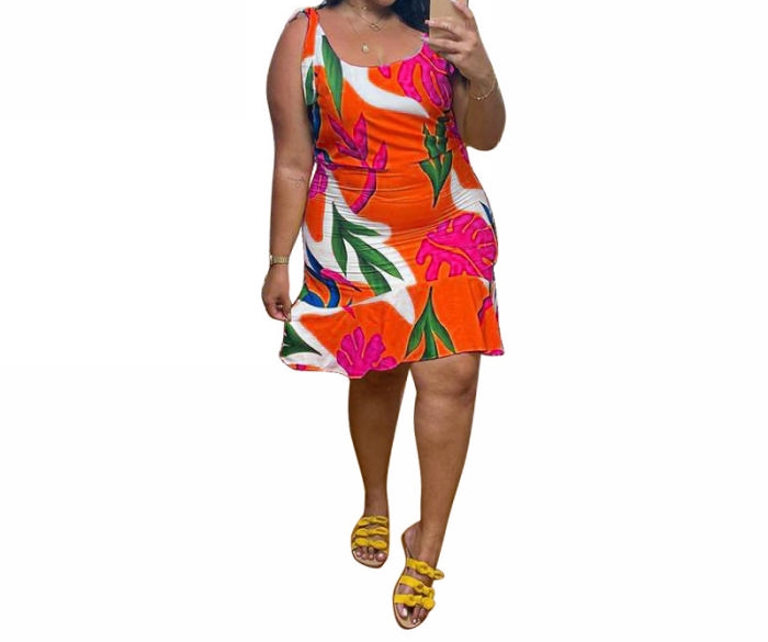 (Real Image)(Plus Size)2023 Styles Women Sexy&Fashion Spring&Summer TikTok&Instagram Styles Print Loose Midi DressSKU: #CF85009-3