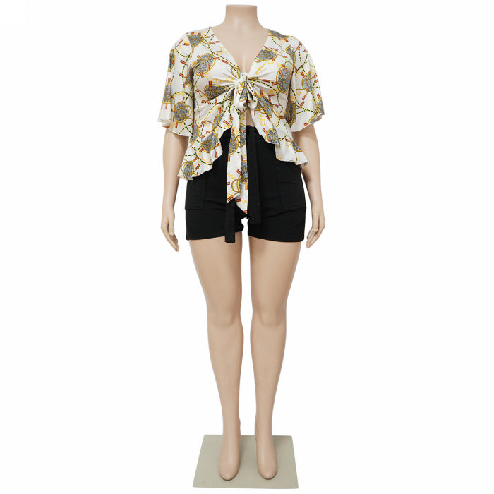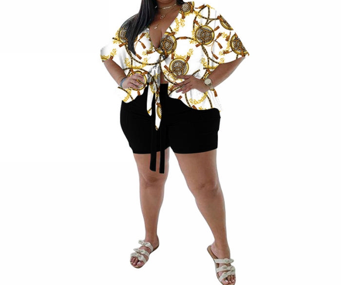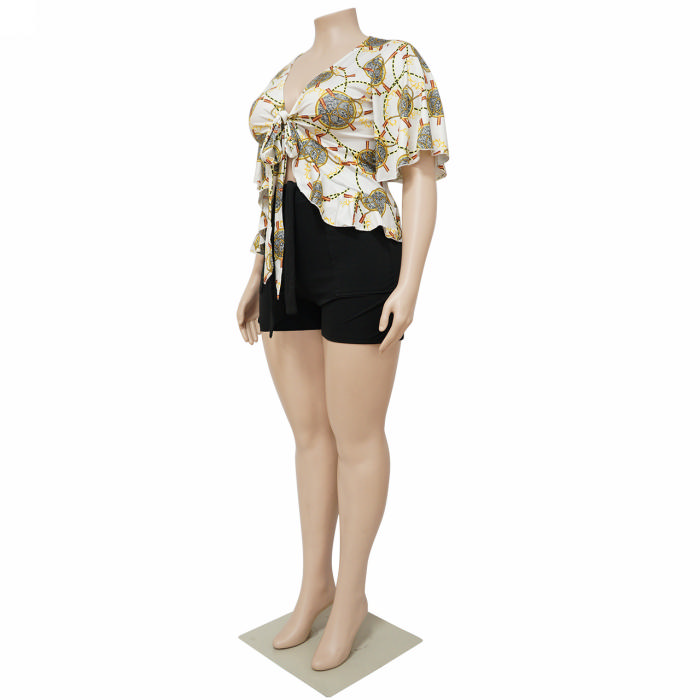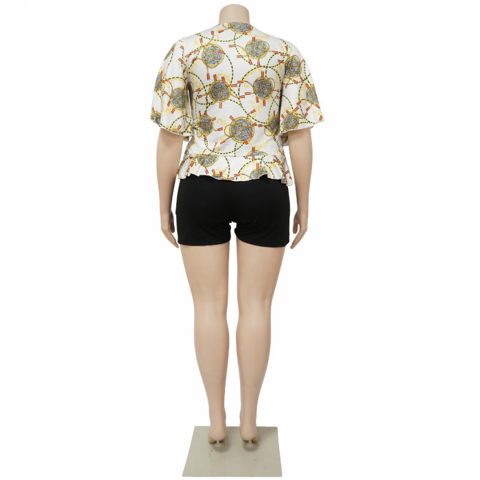 (Real Image)(Plus Size)2023 Styles Women Sexy&Fashion Spring&Summer TikTok&Instagram Styles Print Loose Short Two Piece SuitSKU: #CF85014-1
