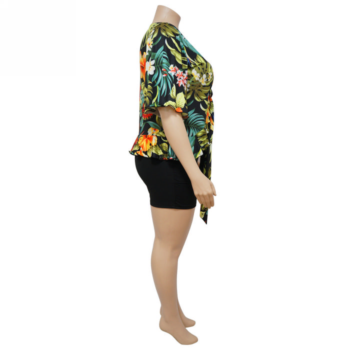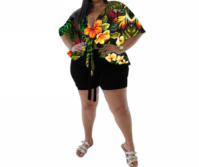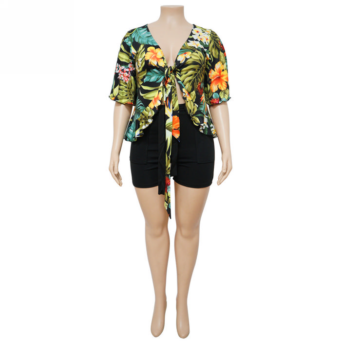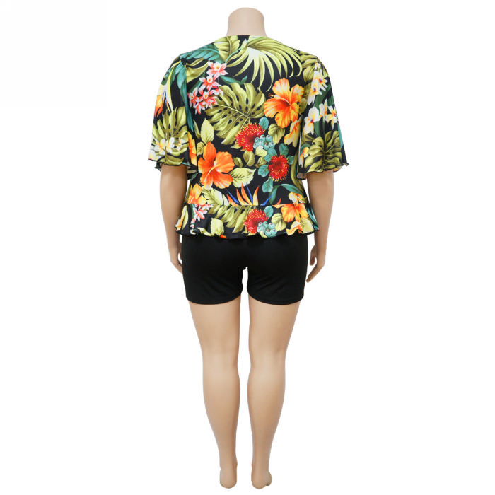 (Real Image)(Plus Size)2023 Styles Women Sexy&Fashion Spring&Summer TikTok&Instagram Styles Print Short Two Piece SuitSKU: #CF85005-1