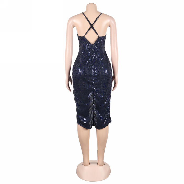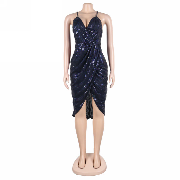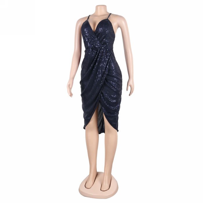(Real Image)(Plus Size)2023 Styles Women Sexy&Fashion Spring&Summer TikTok&Instagram Styles Strap Sequins Irregular Mini DressSKU: #XF27322-3