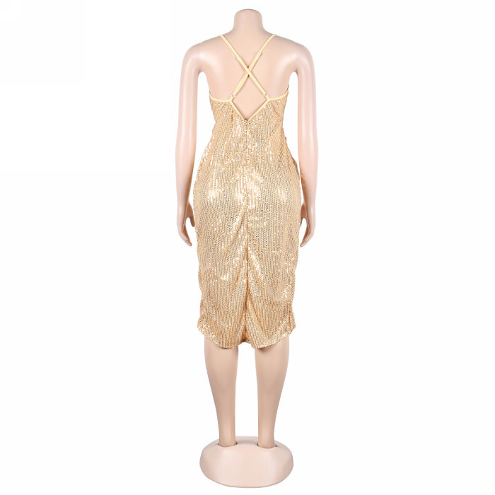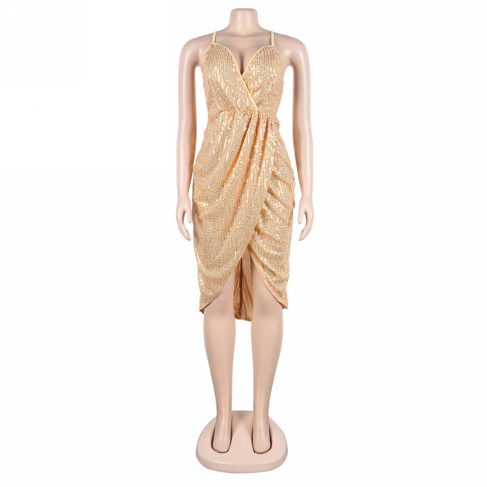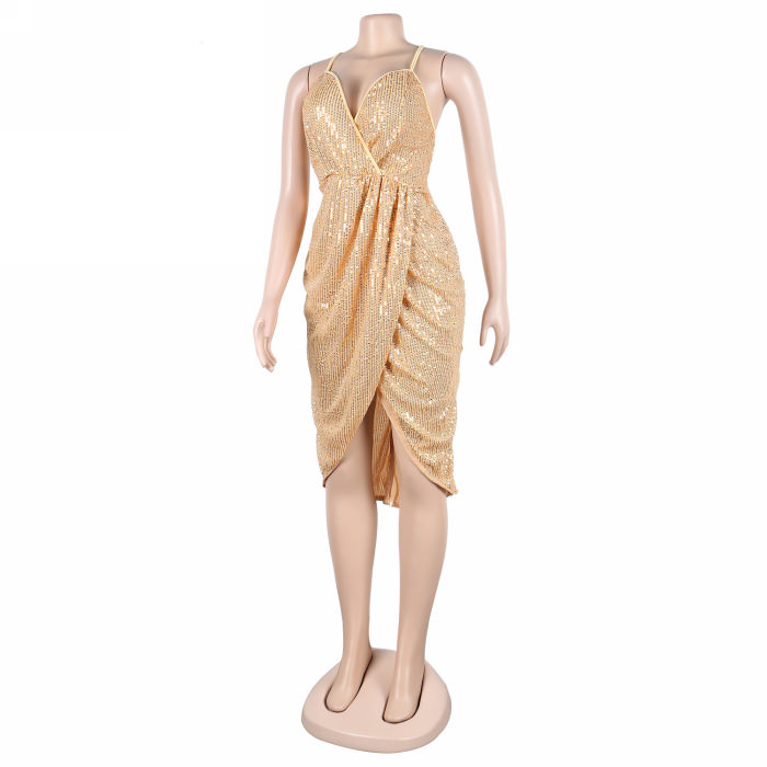 (Real Image)(Plus Size)2023 Styles Women Sexy&Fashion Spring&Summer TikTok&Instagram Styles Strap Sequins Irregular Mini DressSKU: #XF27322-2